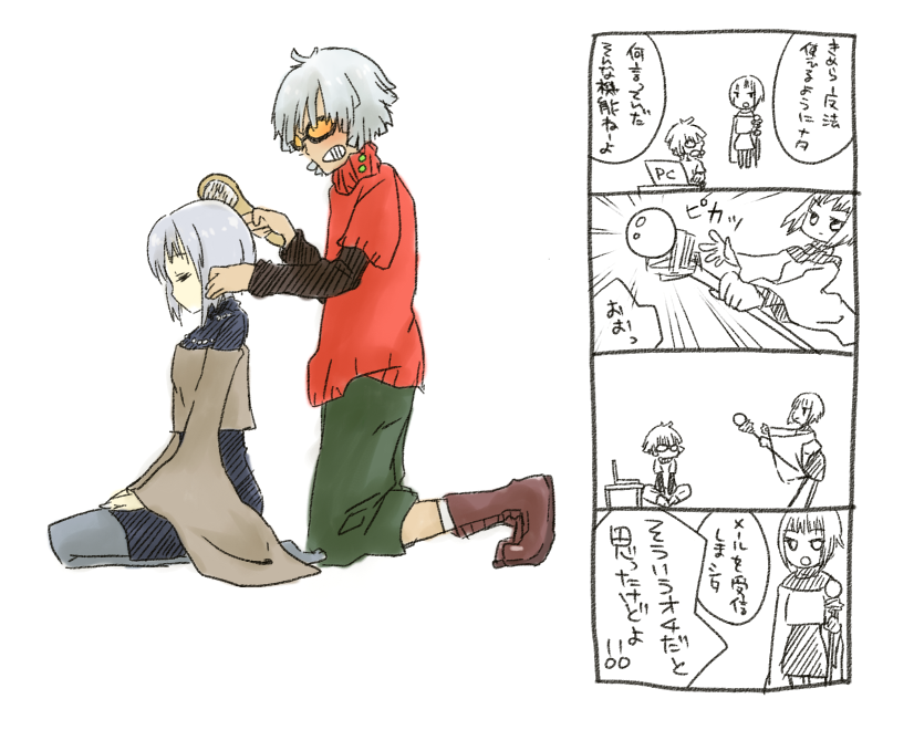 きめらの手入れをするモザイクさん・・・モザイクくん・・・ご主人。